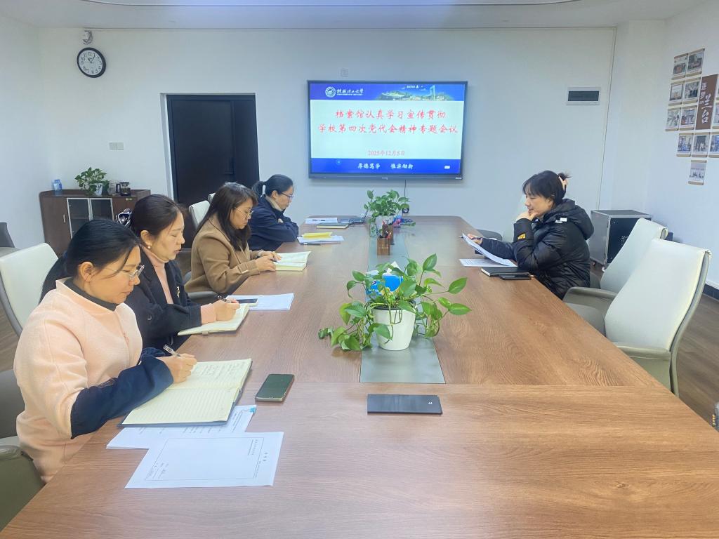 为迅速把思想和行动统一到学校第四次党代会精神上来,切实将会议精神转化为档案馆高质量发展的具体实践。12月5日,档案馆召开认真学习宣传贯彻学校第四次党代会精神专题会议,全体人员参会,会议由档案馆负责人主持。