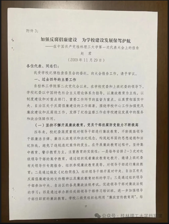 历史是最好的教科书,党代会是最好的成长见证。今天,档案馆精心组织推出【历届党代会回眸】系列推文,循着党代会的时光轨迹,重温那些激动人心的历史时刻,解码学校在党建引领下突破发展瓶颈、实现内涵提升的密码。这不仅是对过往辉煌的致敬,更是对未来征程的蓄力——让我们共同展开这幅承载着光荣与梦想的历史长卷,聆听时代强音,汇聚奋进伟力,从党代会的历史传承中汲取奋进力量,以更坚定的信念、更昂扬的姿态,续写桂工高质量发展的新篇章!
